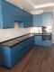 Небесно-голубая кухня с фрезеровкой и диагональными линиями