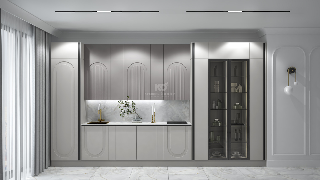 Кухня Арко Неоклассика в серой палитре — это гимн архитектурной гармонии, тишине и глубине. Каждый ее элемент дышит историей, но звучит современно. Это не просто мебель — это интерьерная доминанта с характером: сдержанным, но выразительным.