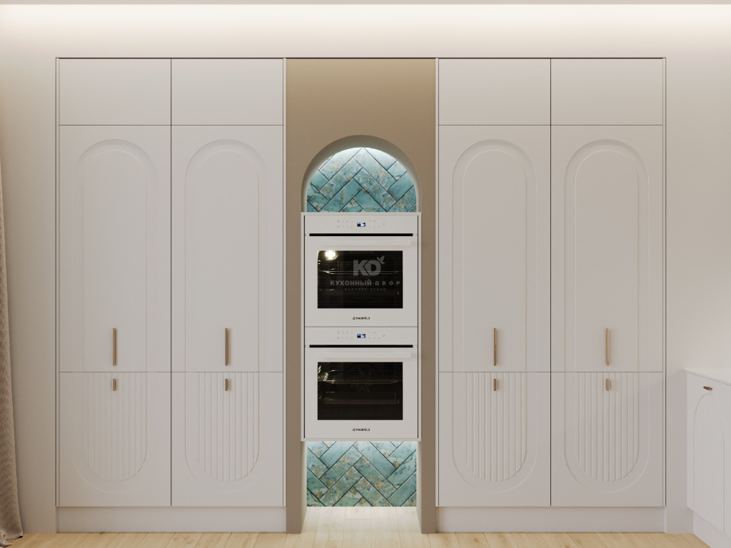 Главная изюминка Арко Эко — арочная фрезеровка фасадов. Она навеяна архитектурой Древнего Рима: торжественные базилики, величественные триумфальные арки, монументальные храмы. Здесь история встречается с современностью — рельеф фасадов не просто украшает, а формирует узнаваемый характер кухни вне времени.