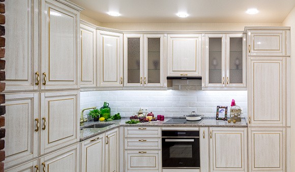 Большой загородный дом украсит модель в классическом стиле. Подобную мебель отличает выверенная геометрия, симметричные линии и роскошная отделка. Для оформления фасадов используются резные узоры, лепнина, мозаики, патина и позолоченные элементы.