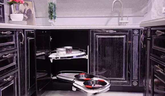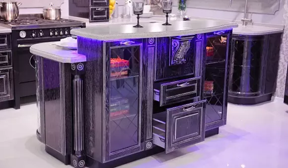 4. Классический дизайн кухни вневременной и элегантный, с акцентом на традиционные элементы и детали. Черный может использоваться для создания драматического контраста в классическом дизайне кухни и часто сочетается с теплыми тонами дерева и декоративными деталями.