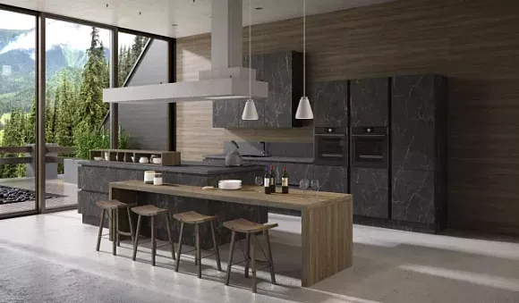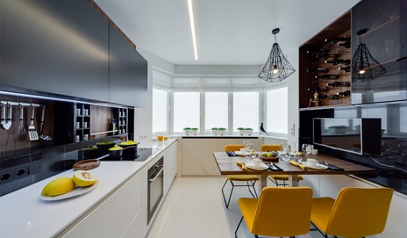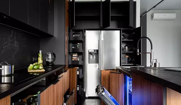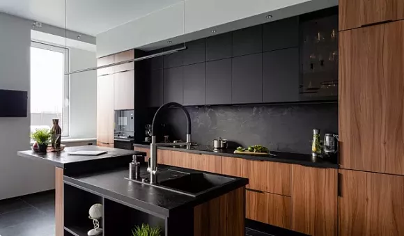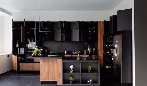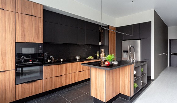 Кухни в черных тонах могут сочетаться с разными направлениями: