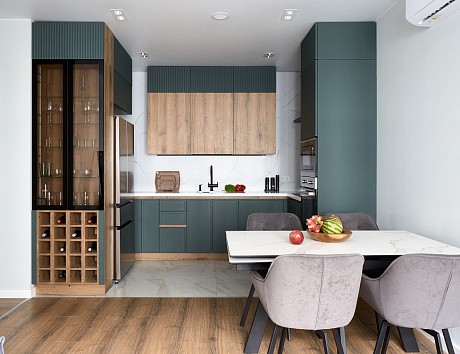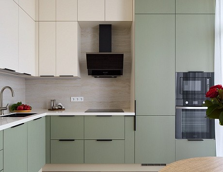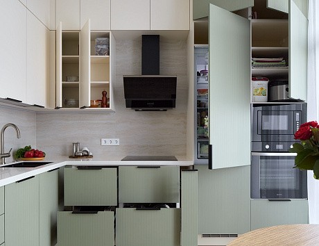 В таких случаях приходится адаптировать параметры кухонного гарнитура. Можно изменить высоту напольных кухонных шкафов, глубину фасадов для кухни, а также варьировать длину кухни в зависимости от особенностей помещения. Именно так рождаются проекты, где учитываются привычки и образ жизни семьи, а не только средние размеры кухни.
