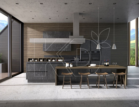 • Кухню сделают менее строгой объемные и фактурные поверхности. Можно использовать природные материалы – дерево, мрамор, гранит и другие виды камня.
