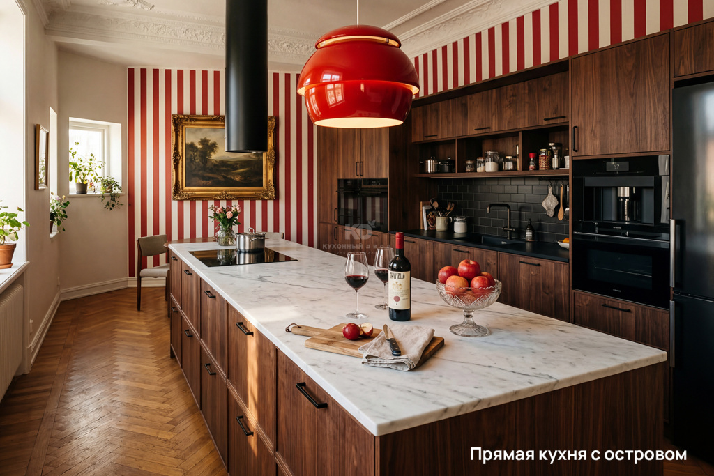 Смелое смешение эпох превращает кухню в настоящую галерею стиля, где каждая деталь рассказывает свою историю. Винтажные элементы, словно ноты из прошлого, добавляют характер и эмоциональный оттенок, превращая дизайн большой кухни гостиной в пространство, которое невозможно забыть. Такой интерьер живёт своей жизнью, удивляет гостей и отражает уникальность хозяев, создавая гармонию между прошлым и современностью.