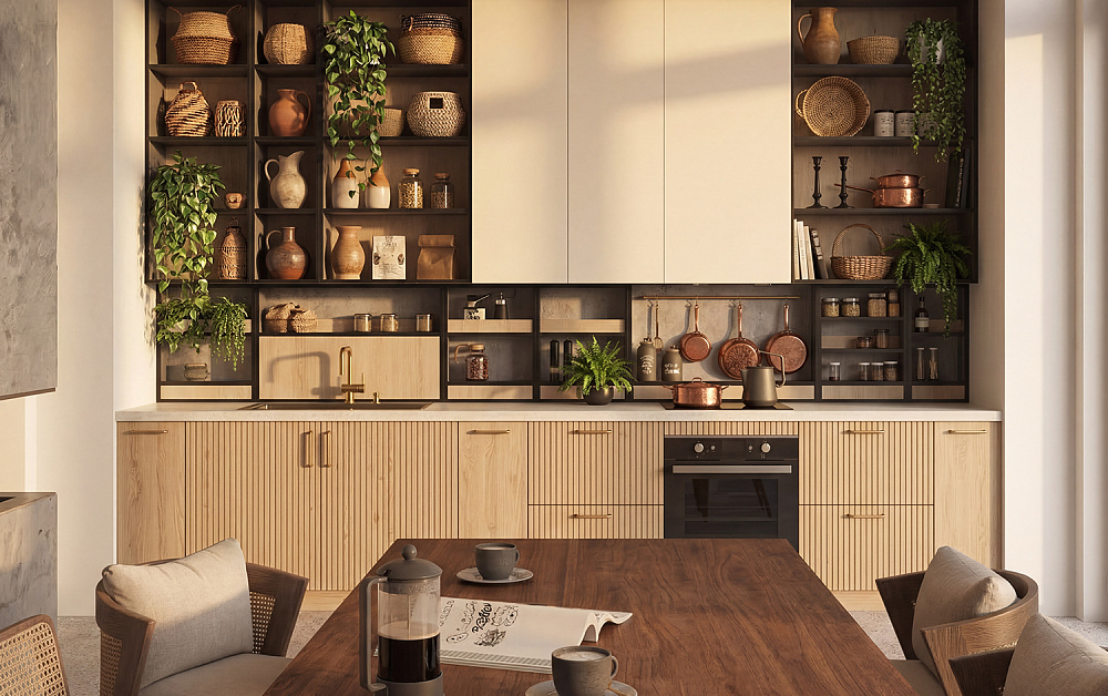 Переработанные материалы, отреставрированная мебель и ретро-аксессуары наполнят кухню историей и душой, превратив её в пространство с характером. Каждый элемент будет нести свой маленький секрет прошлого, а при этом сохранит экологичность и заботу о планете. Такой подход делает интерьер живым, уникальным и одновременно современным, доказывая, что стиль и устойчивость могут идти рука об руку.