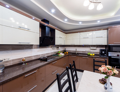 Приобрести глянцевый комплект мебели в любом цвете вы сможете в бренда «Кухонный двор». Здесь можно заказать дизайн-проект по индивидуальным замерам или купить готовый гарнитур.