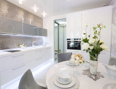 • Визуальное расширение площади. Белые кухни такого типа отражают естественный свет, тем самым зрительно увеличивая пространство.