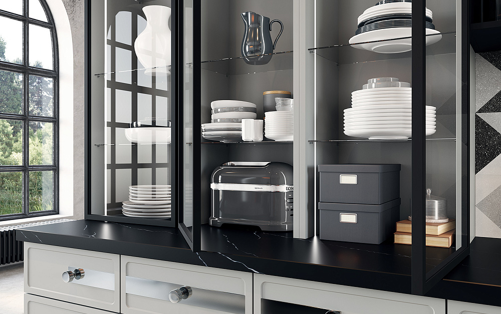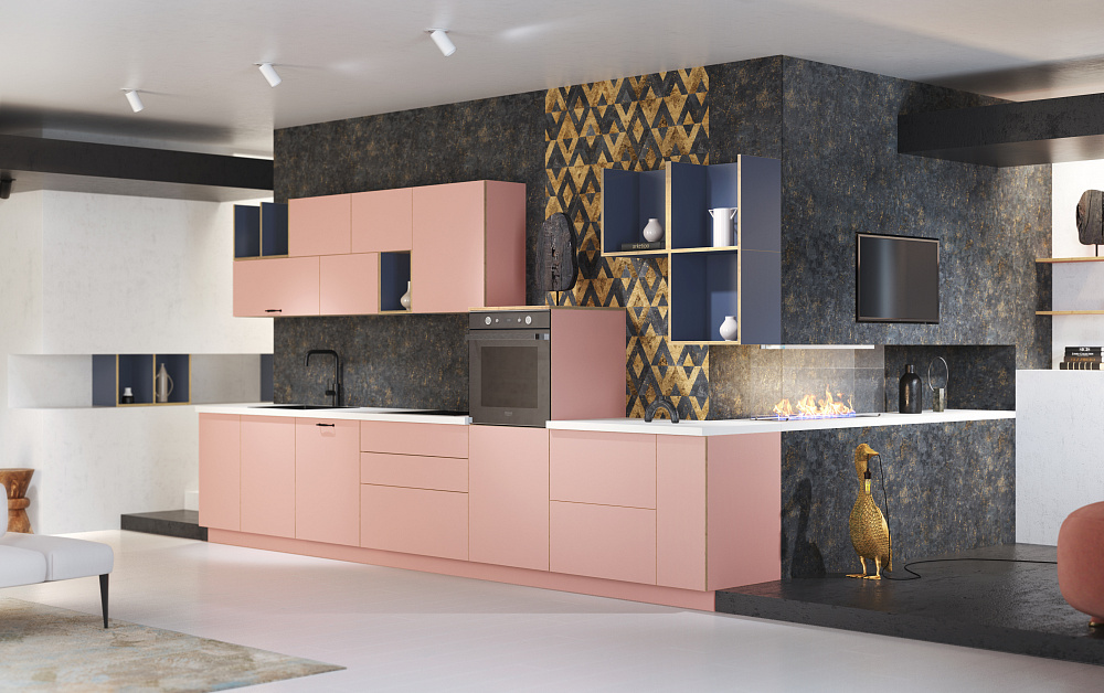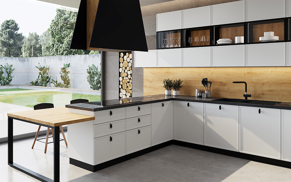 Если вы выбираете изготовление кухни на заказ, внимательно отнеситесь к выбору фурнитуры. Она тоже станет частью пространства, подчеркнет красоту даже недорого ремонта. Для плоских однотонных фасадов можно подобрать эффектные ручки, которые будут смотреться как гармоничный элемент декора.