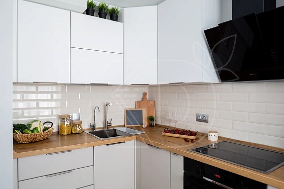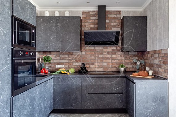 • Угловая. Это самое распространенное решение. Угловая кухня позволяет грамотно разместить рабочую зону и места для хранения таким образом, чтобы хозяйке было удобно перемещаться по комнате.