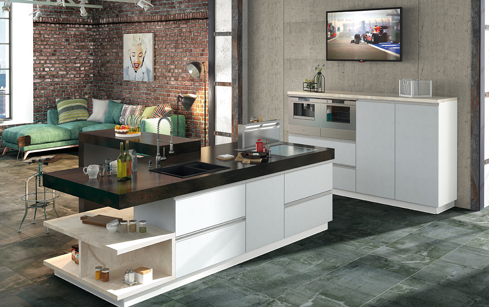 Рабочая поверхность эксплуатируется ежедневно – на ней режутся овощи и фрукты, смешиваются салаты, готовятся ингредиенты для первых и вторых блюд, размещается посуда и различные приспособления. Поэтому столешница должна выдерживать длительные механические нагрузки, а также воздействие влаги и бытовой химии.