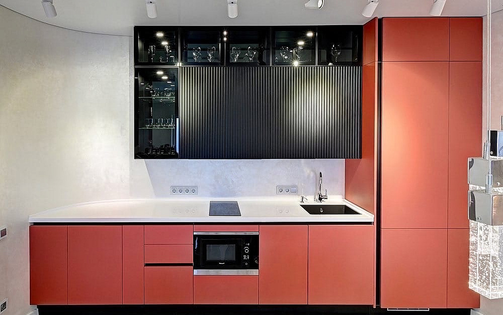 Готовые решения – не самый удачный вариант, особенно для нестандартных помещений. Гораздо практичнее заказать кухню от производителя. В этом случае планировка и дизайн будут разрабатываться с учетом архитектурных особенностей пространства и пожеланий клиента.