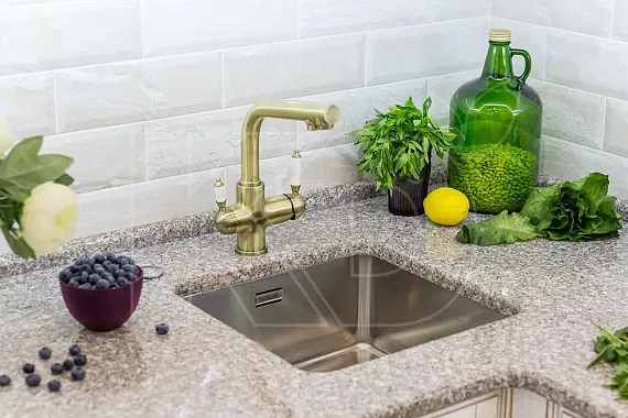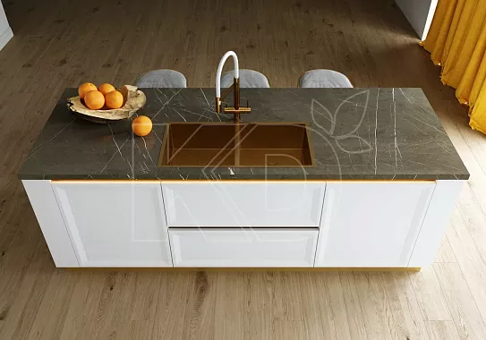Такие изделия чаще создают на заказ из мрамора, оникса или гранита. Они красивые, прочные и безопасные. У моек из камня есть и недостатки. Они дорогие, сложные в уходе из-за пористой структуры и очень тяжелые – для установки нужен стол с дополнительными опорами.