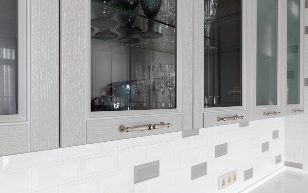 Так, для установки классической кухни потребуется большая площадь. Комплекты в стиле классика отличаются роскошной отделкой в виде позолоты, резьбы, лепнины, патины. Исходя из этого, для оформления стен и потолка следует использовать соответствующие элементы – многоярусные люстры, картины в резных рамах, дорогие обои с теснением и шелкографией. Напольное покрытие может быть каменным, деревянным или из искусственных материалов высокого качества.