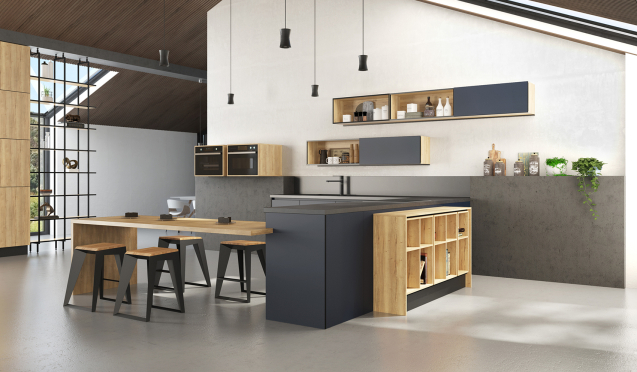 Кухни лофт. Данный дизайн предполагает использование разных материалов – от натурального дерева и качественного МДФ до прочного пластика. При этом пластиковые элементы отмываются любыми неагрессивными средствами и мягкими губками. МДФ не любит влаги, поэтому протирается хорошо отжатыми салфетками из ткани. Жирные пятна с фасадов удаляются при помощи обычного средства для посуды.