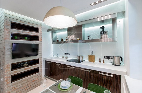 Если есть желание установить в маленьком помещении яркую или темную кухню, то можно последовать ему при соблюдении некоторых условий. В этом случае хорошо «разбавить» интерьер белым цветом, например, окрасить стены и потолок в данный оттенок. Еще один удачный вариант – установка гарнитура с двухцветными фасадами. Например, можно выбрать черно-белую или красно-белую мебель.