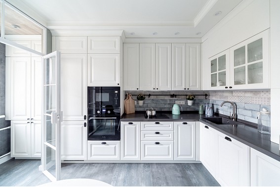 Помимо цвета, нужно учесть и вид отделки фасадов при выборе лучшего варианта для вашей кухни. Матовые фасады практичны и выглядят элегантно. Они будут уместны в любом интерьере – как в классическом, так и в современном. Все большую популярность набирают и глянцевые фасады, которые отражают свет подобно зеркалам. Мебель с такой отделкой станет хорошим вариантом для современной кухни. Она подойдет для интерьеров в стиле хай-тек, модерн, лофт.