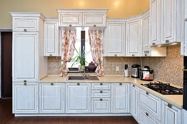 Компания «Кухонный двор» производит гарнитуры из натуральной древесины и качественного МДФ. У нас можно заказать кухню с фасадами любой расцветки. Наша продукция обладает следующими преимуществами: