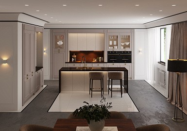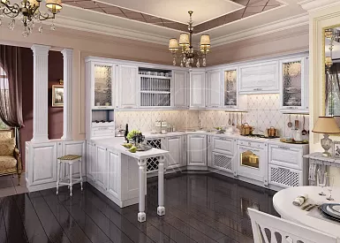 Красота дубовой фактуры полностью раскрывается в классическом стиле. Вся гамма природных коричневых оттенков передает строгость и роскошь классики. Планировка таких кухонь может быть прямой, угловой, параллельной или островной. Особенно эффектно классические модели смотрятся с гнутыми и радиусными фасадами. Подобные версии выглядят плавными и завершенными, добавляя в интерьер особый шик и элегантность.