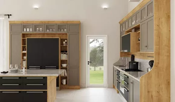 Деревенский прованс – это однозначно смелое решение. При оформлении кухни коричневого цвета в подобном стиле используется окраска из натурального дерева. Производитель намеренно состаривает поверхности, используя специальные методики. Проводится формирование декоративных трещин и достижение эффекта выщербленности. Благодаря этим элементам и формируется представленный стиль.
