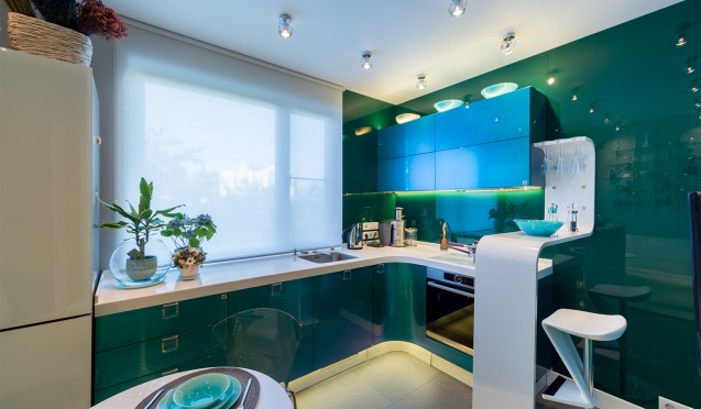 • Практичность. Переливающиеся фасады легко очищаются от загрязнений. Чтобы удалить с них капли жира и подтеки, достаточно использовать мягкую губку или влажную хлопковую салфетку.