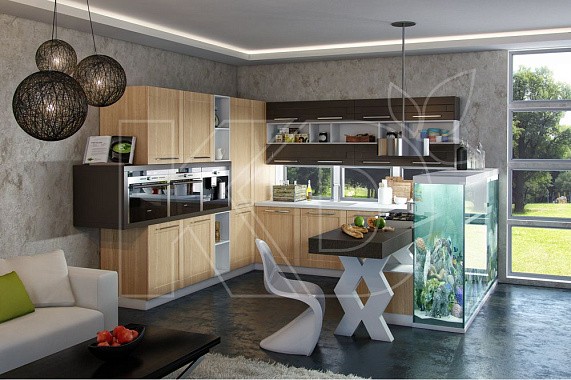 Купить гарнитур из натурального дерева, экомассива, МДФ и других качественных материалов предлагает бренд «Кухонный