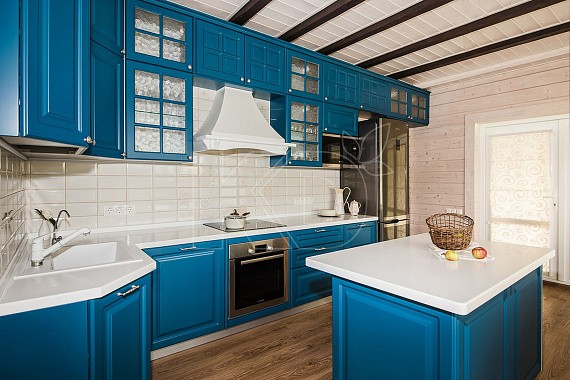 Голубой оттенок универсален и вписывается в кухни практически всех стилей, но некоторые направления буквально созданы для него: