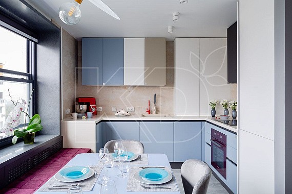 • Если цвет бледно-голубой, то голубая кухня потребует дополнения в виде пастельных и бежевых акцентов.