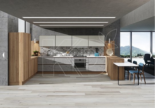 Еще один материал, который используют при производстве бюджетных гарнитуров – экоплиты Egger. Их также получают путем прессования древесной стружки под высоким давлением, а затем наносят специальное покрытие. Фасады, изготовленные из таких экоплит, могут иметь текстуру дерева или верхний слой из матовой или эффектной глянцевой эмали.