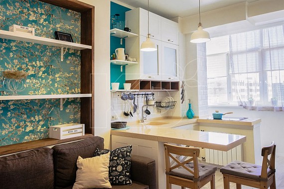 Эффектно выглядит облицовка стен кирпичом и натуральным камнем. Однако этот вариант отличается высокой стоимостью и используется для отделки кухни не так часто. Иногда его применяют для частичной отделки. Например, в зоне кухонного фартука. Остальные части стены оклеивают обоями или покрывают влагостойкой краской.