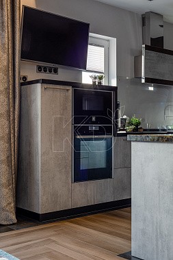 • В шкаф-колонну можно встроить микроволновую печь. Если подобная конструкция отсутствует, микроволновку располагают на специальных креплениях на стене.