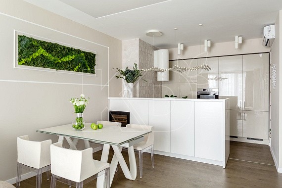 Интересный вариант для организации кухонного пространства – П-образные кухни без навесных шкафов. Такая планировка подходит для помещений разного типа. При этом богатая цветовая палитра и разнообразие дизайнерских решений позволяют подобрать модель практически для любого интерьера