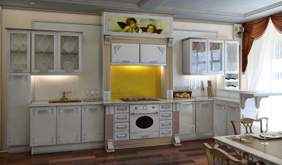 Компания «Кухонный двор» производит кухни на заказ по индивидуальным замерам. При разработке дизайн-проекта учитываются пожелания заказчика относительно дизайна, планировки и наполнения.