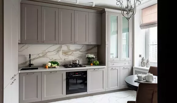 Универсальность. Фасады серого цвета привлекательно смотрятся как в бюджетных, так и более дорогих моделях. Благодаря этому подходящую модель можно подобрать для любого интерьера.
