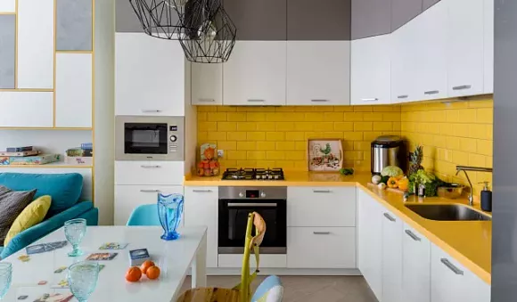 В пространствах, расположенных на северной стороне, желательно использовать сочетание светло-серого с красным и другими яркими расцветками. Использовать дополнительный тон лучше точечно. Например, для отделки кухонного фартука, столешницы и верхних фасадов.
