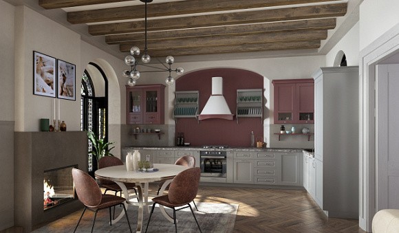 Сочетаемость с другими оттенками. При желании такой кухонный гарнитур можно декорировать элементами любого цвета.
