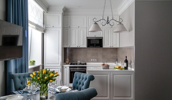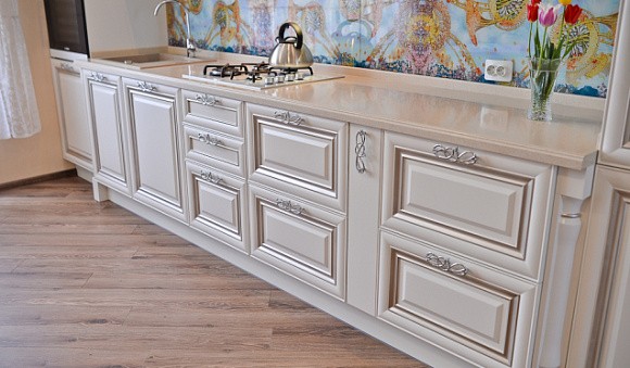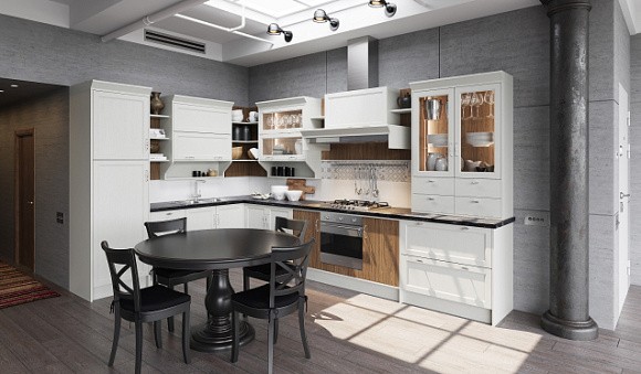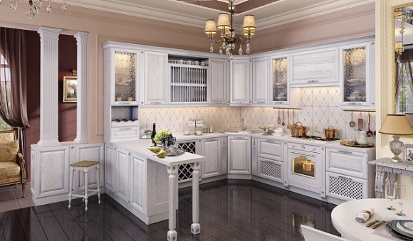 Классические кухни в светлых тонах узнаваемы по четким строгим линиям и простым формам. Кухни классик декорируют позолотой, лепниной, патиной и резными узорами.