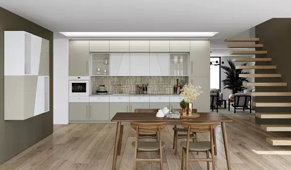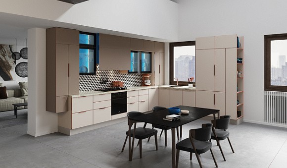 Визуальное расширение пространства. Фасады кухни светлого цвета отражают солнечные лучи, тем самым зрительно увеличивая его и делая более воздушным.
