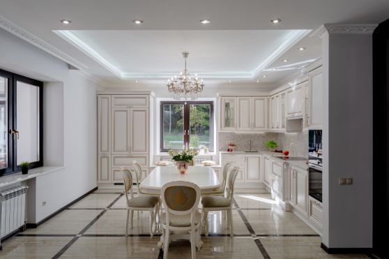 Угловые белые классические кухни