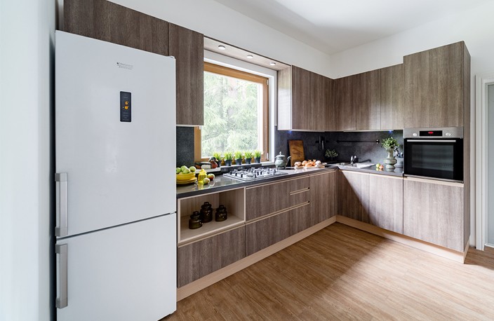 Заказать любую модель углового гарнитура вы можете в бренда «Кухонный Двор». Проекты кухонь в нашем каталоге разработаны с участием ведущих итальянских дизайнеров. Для изготовления мебели используются разные материалы: натуральный массив, МДФ (обычный и шпонированный), а также современные и экологичные плиты Egger.