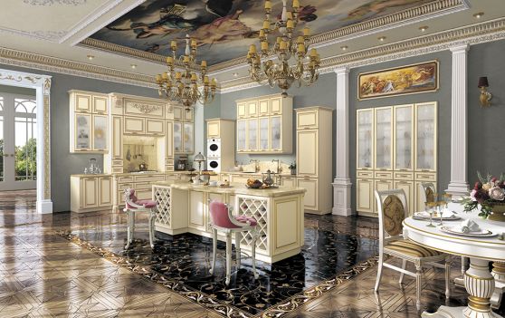 3.     Кухня со стилизацией фасадов под серебро или золото