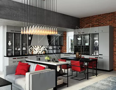 Фасады, которые отражают свет, привлекают слишком много внимания. Они уместны, если кухня располагается в отдельном помещении. Если мы оформляем кухню-гостиную, то в качестве финиша лучше выбрать матовое покрытие. Оно придаст помещению аккуратный вид.