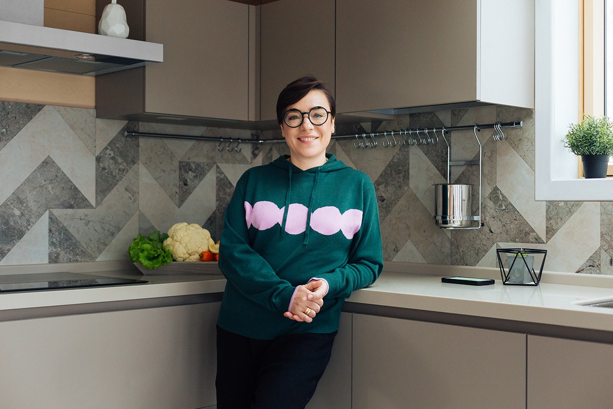 Здесь использована невероятно стильная комбинация бархатистых поверхностей «Extra Touch Matt» и системы открывания фасадов без ручек «Space Line». На этом сочетании основан уникальный образ кухни: лаконичный, сдержанный, и в то же время дружелюбный. Матовые поверхности «Ханны Натив» пробуждают желание прикасаться к ним снова и снова. Делать это можно без опаски, ведь фасады «Extra Touch Matt» устойчивы к загрязнениям и неприхотливы в уходе. Очень полезные качества, особенно когда в доме живёт трое детей!
