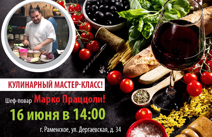 16 июня наш салон в городе Раменское проводит сочный мастер-класс с Марко Праццоли! Звёздный итальянский шеф-повар очень постарался и приготовил для Вас по-настоящему волшебное меню! На этот раз вместе с Марко Вы научитесь готовить аппетитные баклажаны Пармиджано и чудесное утиное филе под соусом из красного вина и вишни! Говорим Вам точно – эта уточка станет отличным трофеем в Вашей личной коллекции рецептов!