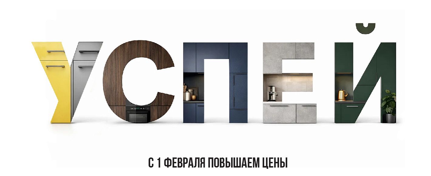 1 февраля повышаем прайс. До 31 января включительно внесите предоплату и зафиксируйте самую вкусную цену на кухню!